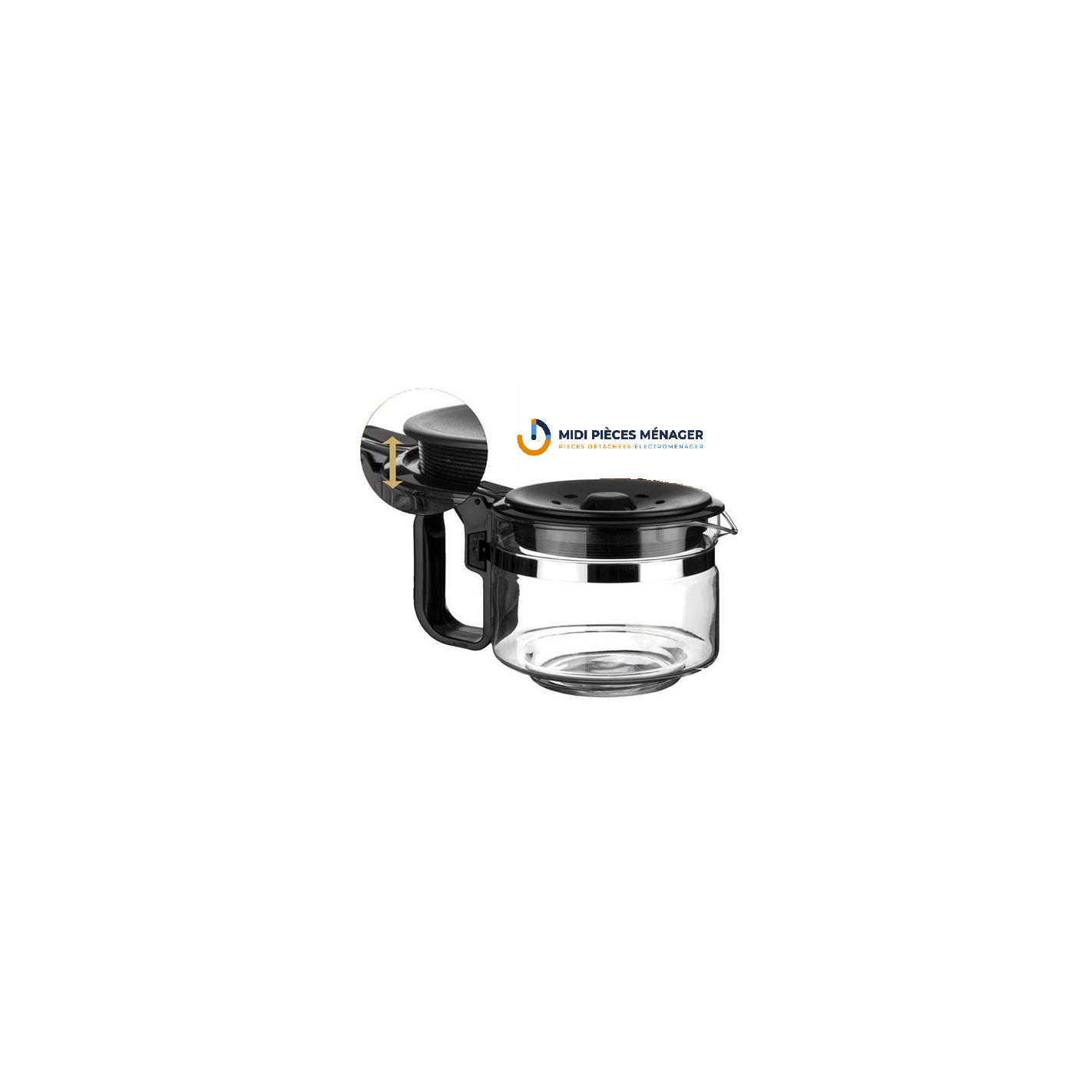 Verseuse adaptable 9/12 tasses. Couvercle articulé. S’adapte à la hauteur du stop-goutte de la cafetière. Pas de vis de 1,2 cm. Verre antichoc.