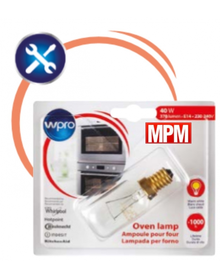 Ampoule pour four - E14 T29 - 40W - 220V longueur 74 mm x diam 27 mm. Cette ampoule est spécifique pour les appareils électroménagers. Elle ne convient pas pour les éclairages et luminaires de maison. Durée de vie moyenne de 1000 heures. 40 W 370 lumen • E14 • 230-240 V